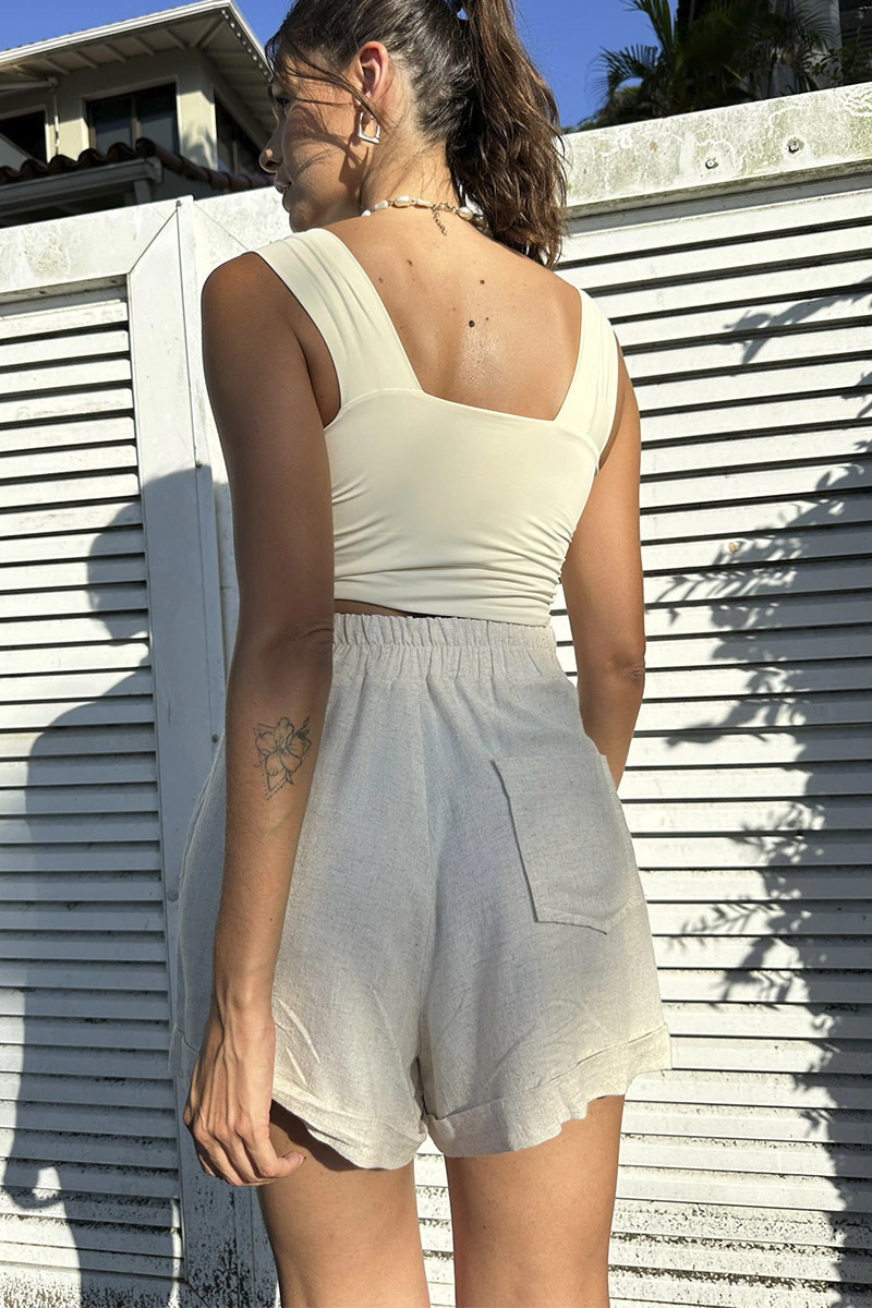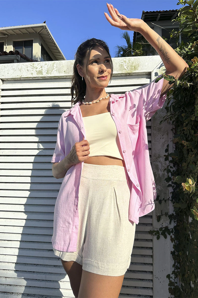 Nossa bermuda de linho modelo soltinho é a sua nova aliada para o calor! Com preguinhas charmosas na frente e uma pala larga, ela é super confortável. O elástico nas costas garante que você fique à vontade o dia todo. E não podemos esquecer da barra dobrada e do bolso nas costas, que dão aquele toque descolado!