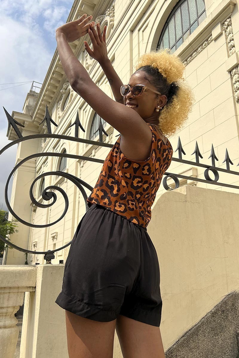Com caimento leve e soltinho, nosso short apresenta cós elástico nas costas para um ajuste perfeito, fecho frontal com botão e zíper, além de bolsos estilo faca que adicionam um toque prático e moderno. Conta com passador de cinto, que o torna ideal para composições elegantes e despojadas.